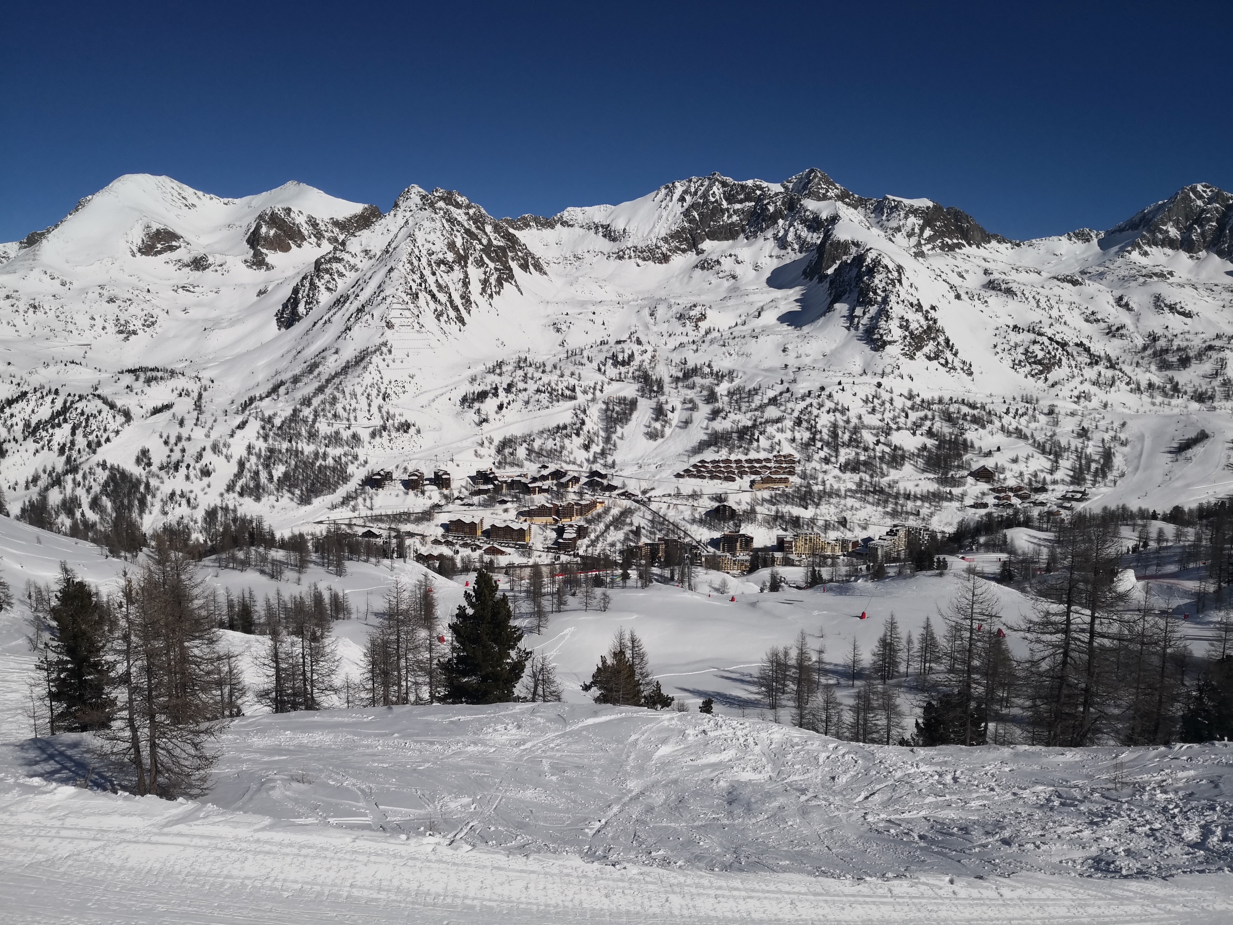Belles pistes, neige bien travaillée. Choix de pistes pour tous niveaux. Les immeubles du front de neige sont à pleurer de tristesse...