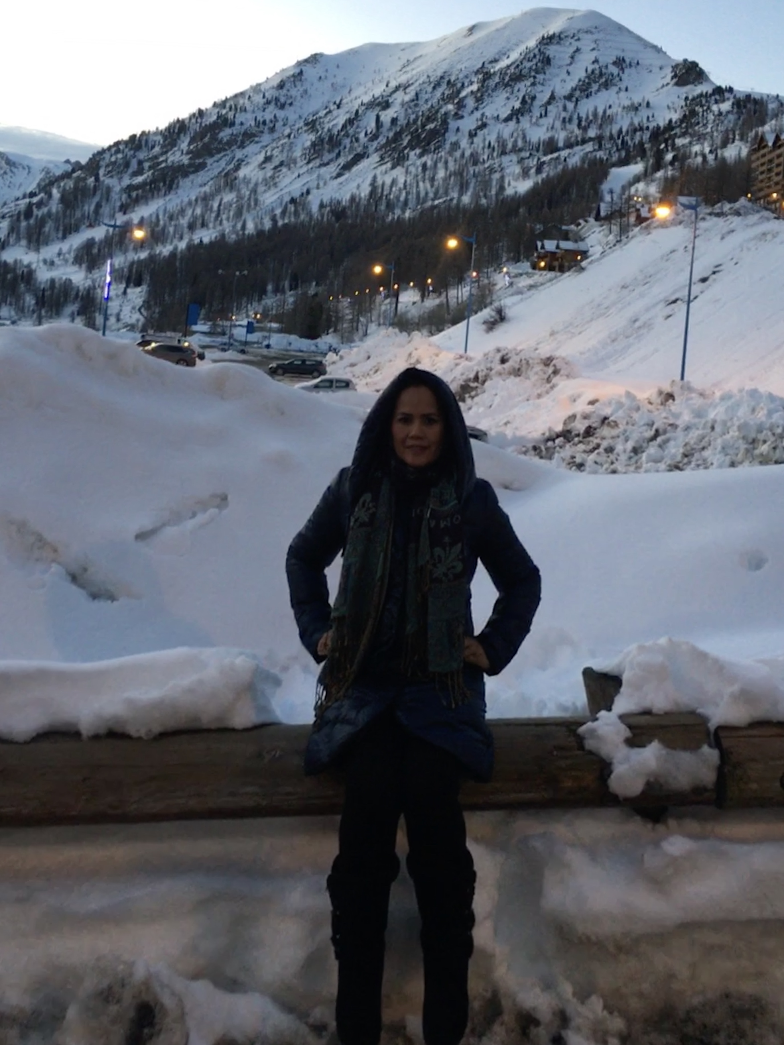 J'ai beaucoup aimé de Nice à 100 km, il y a des palmiers et des mandarines, et ici il y a beaucoup de neige, très belle, les montagnes sont magnifiques